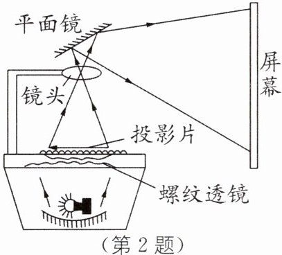 (1) 投影仪的镜头相当于______镜,其作用是使投影仪上的图案通过它的折射后成______;平面镜的作用是______,使像能投射到______上.