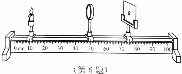 6. 提分优练 (2024·枣庄中考)小明探究凸透镜的成像规律时,各器材位置如图所示,光屏上承接到烛焰清晰的像(未画出烛焰的像).此时烛焰的成像特点与______(填"照相机""投影仪"或"放大镜")的成像特点相同.若凸透镜位置不变,调换蜡烛和光屏的位置,______(填"仍能"或"不能")在光屏上得到清晰的像,这说明光发生折射时,光路是______的.