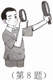 8. 如图所示,小明找到两个焦距不同的放大镜模拟望远镜观察远处的物体,其中较远的放大镜的功能是使远处物体在焦点附近成____(填“虚像”或“实像”),较近的放大镜的作用是将该像____(填“放大”或“缩小”).
