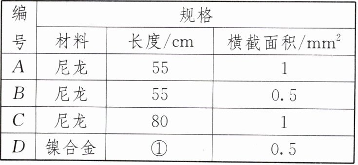 | 编号 | 规格 | 材料 | 长度/cm | 横截面积$/mm^2 $|