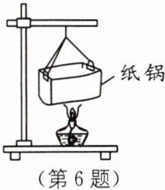 6. 新情境 纸锅烧水 (2023·镇江中考)能用纸锅烧开水吗?小华带着疑问进行了如图所示的实验探究. 她惊奇地发现:水真的能烧开!对实验分析正确的是( ).
