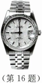 16. 如图所示,透过手表表盘上光滑透明凸起部分,能清楚地读出日期信息,光滑透明凸起部分相当于______,观看到的是日期数字的______(填“实”或“虚”)像.手表的背面打磨得非常光滑,能清晰地照出小明的像,此像的大小与小明本人相比______(填“变大”“变小”或“不变”).
