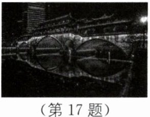 17. (2024·成都中考)夜幕降临,横跨成都锦江两岸的安顺廊桥灯火璀璨,桨声灯影里,夜色让人陶然而醉……正所谓“锦江灯月遥相近,烟火市井三千年”.如图所示,水中“灯影”是由于光的______形成的;若锦江水面上涨,水中“灯影”到水面的距离变______.
