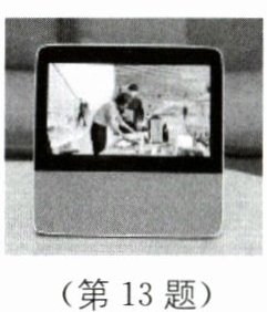 13. 新情境 智能屏 如图所示是一新款智能屏,它可以和“主人”进行语音交流,接收“主人”的指令,播放音乐,播报天气.还具有模仿父母的______(填“音调”“响度”或“音色”)讲故事哄娃入睡的功能,其彩色显示屏上的图像是由红、______、蓝三种色光混合而成的.