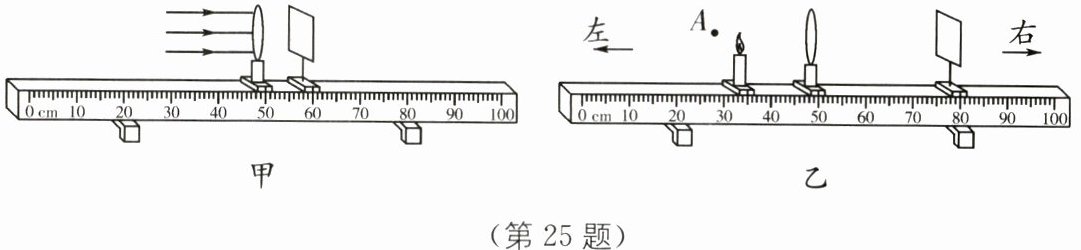 (4)若在图乙中一阵微风吹过,使得烛焰向A点方向移动,发现光屏上“烛焰尖部”变模糊,则将光屏向______(填“左”或“右”)移动,“烛焰尖部”又会变清晰.