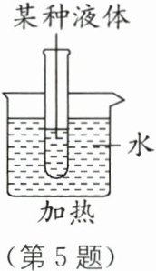 5. 如图所示,对烧杯加热一段时间至水沸腾,然后再将盛有某种液体的试管插入沸水中,结果一段时间后试管中的液体也沸腾了,由此可以判断( ).