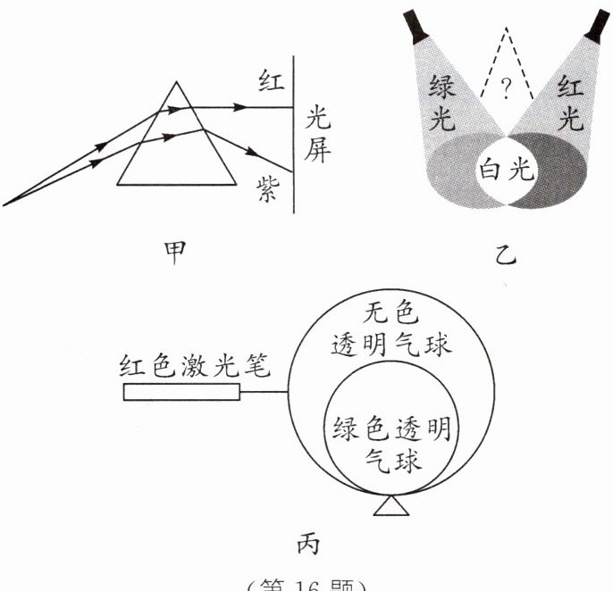 (3)只有绿色透明气球会爆破 绿色透明气球只能反射绿光,会吸收红光,使得绿色气球内的气体的温度升高,气体体积膨胀 [解析]