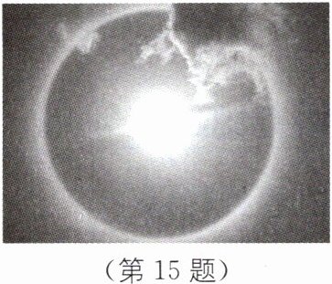 15 2023 年 5 月 13 日,湖北省多个地区的人们看到太阳的周围出现一个彩色的光圈,如图所示.这是一种罕见的天象——日晕,它是光的 现象,这种现象说明太阳光 (填“是”或“不是”)单色光.