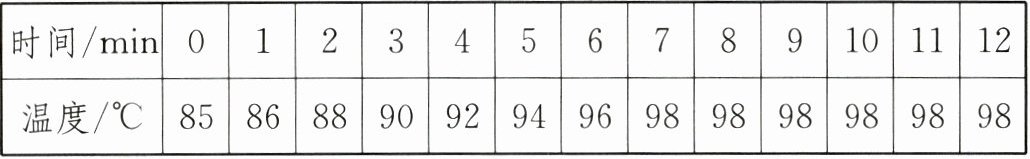 (2)在水温升高到$85^{\circ}C$后,每隔$1min$读取一次温度计的示数,直到水沸腾并持续一段时间.将所得数据记录在表格中:
