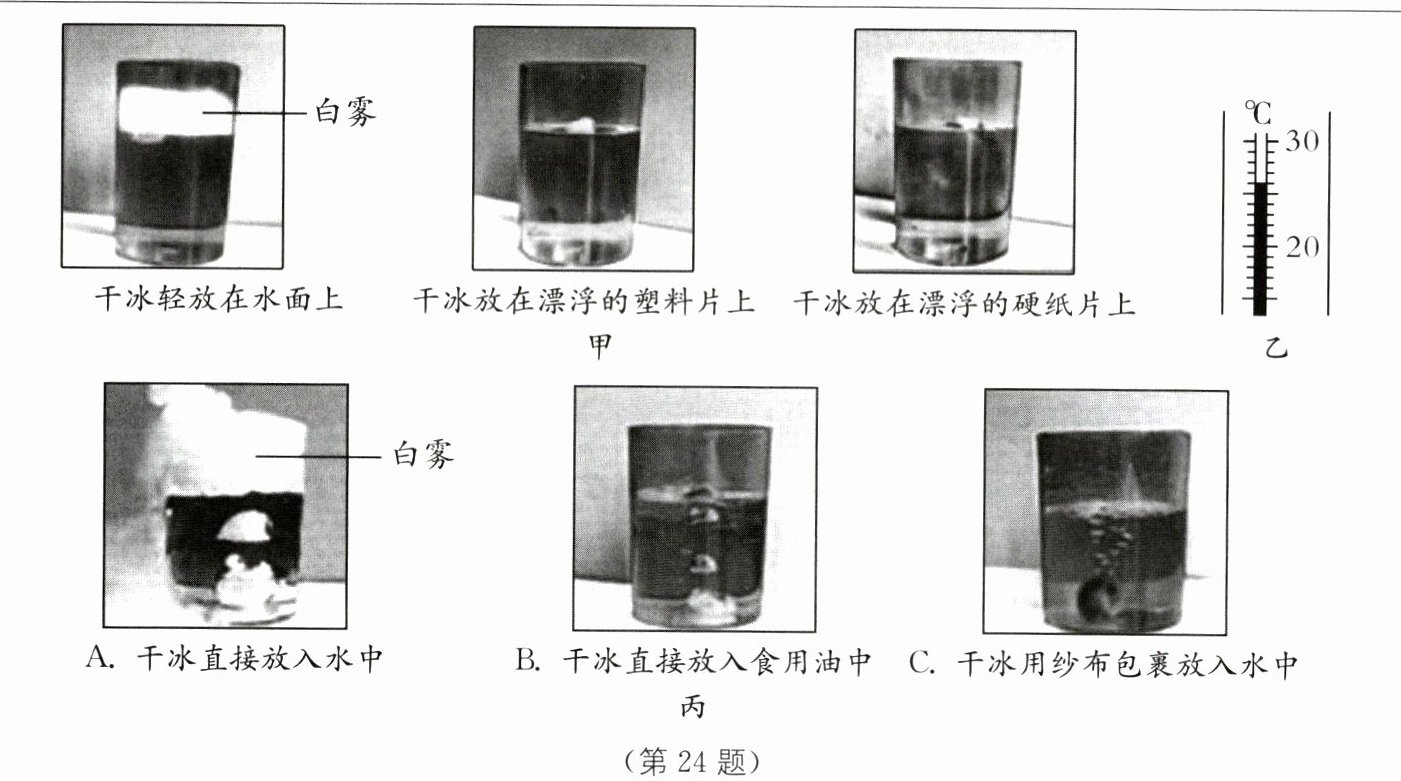 24. (7分)学校文艺演出时,为渲染气氛,老师将一些干冰放入水中,舞台上瞬间弥漫了大量“白雾”,同学们对此很好奇.