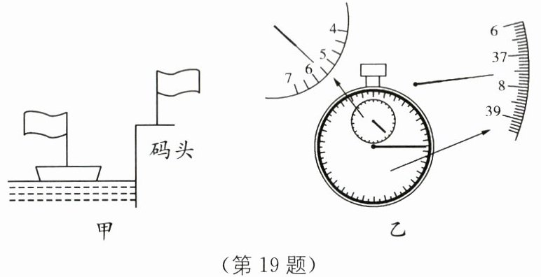 19. 俗话说“水涨船高”,“水涨”是以______为参照物的.根据图甲中轮船和码头上飘扬的旗帜,可以判定轮船在______(填序号).