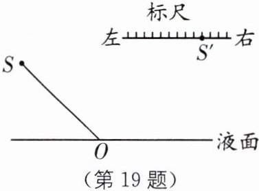 (2)此时反射光线与入射光线的夹角为______;光经液面反射后照射到液面上方水平标尺上的S'点,,当液面上升时,光点S'将______(填 "向左""向右"或 "不会")移动.,,,