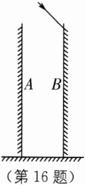 16 如图所示,两等大的平面镜A、B直立在地面上,A、B 高为0.95 m,相距30 cm.有一细束激光与竖直方向成45°角射到平面镜B的上边缘,经多次反射后射到地面.求: