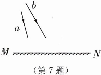 7 如图所示,a、b 是平面镜 MN 前一点光源 S 射向镜面的两条入射光线,请在图中标出点光源和像点 S'的位置,并完成光路图(保留作图痕迹).