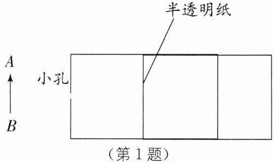 1 如图所示是一个蜡烛 AB 和一个小孔成像装置,请在图中半透明纸上画出蜡烛 AB 的像 A'B'.