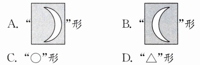 5 如图所示是日偏食现象示意图,形成这种奇观是由于光是 传播的,也说明光 (填“能”或“不能”)在真空中传播.某同学将太阳光垂直照射在纸板上一个很小的“△”形孔上,那么在地面形成的光斑形状是 (填序号).