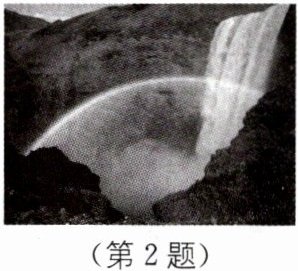 2(2024·镇江中考)诗句“香炉初上日,瀑水喷成虹”描述了如图所示的情景:太阳刚升起时,从瀑布溅起的水雾中可看到彩虹.此现象属于( ).