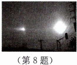 8 教材 P65 图 3-8·变式 某市的天空出现一大一小两个太阳,如图所示.光学专家解释称,当天天空中有半透明的云层,空气中有不少漂浮物,这些漂浮物沾上云层中的水汽后,形成类似于多棱镜的结构,使太阳光发生了反射和______现象,所以产生了“两个太阳”,形成的太阳是______(填“实”或“虚”)像.