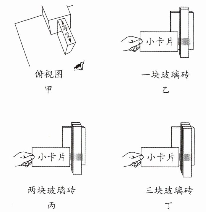 (3)为了观察不同厚度玻璃的成像情况,他将第二块相同的玻璃砖紧贴在第一块后面,如图丙所示,观察并记录像的位置;他再将第三块相同玻璃砖紧贴在前两块后面,如图丁所示;观察并记录像的位置,如图戊所示.