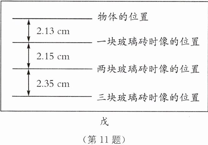 11 小华偶然间竖直向下看到放在玻璃砖下面的字发生了错位.