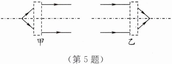 5 如图所示,虚线框内为透镜,透镜左侧的两束光经过透镜折射后的出射光如图所示.甲、乙两图中的虚线框内( ).