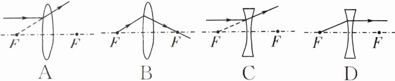 4 教材 P69图 3-17·改编 如图所示,F 是透镜的焦点,其中正确的光路图是( ).