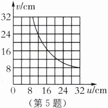 5 在探究凸透镜成像的规律实验中,如图所示是像到凸透镜的距离 v 跟物体到凸透镜的距离 u 之间的关系图像,由图像可知( ).