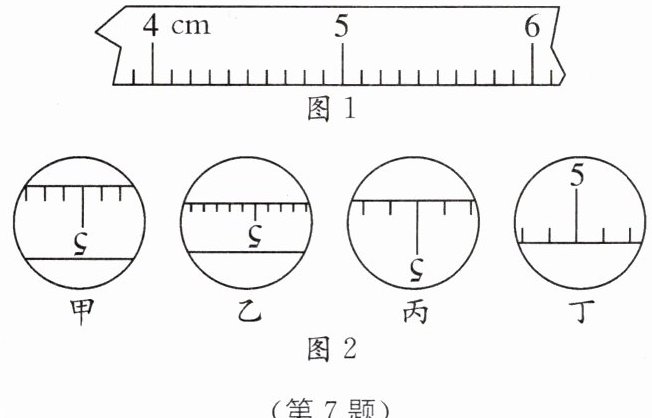 7 如图1所示是放置在水平桌面上的刻度尺的一部分,图2中甲、乙、丙、丁是通过凸透镜所看到的刻度尺的像.若凸透镜先贴着刻度尺然后逐渐远离,则看到刻度尺的像的先后顺序正确的是______.