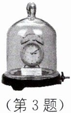 3 教材P14图1-5·拓展 如图所示,将一个正在响铃的闹钟放在玻璃罩中,当不断地将罩内的空气向外抽时,人耳听到闹钟的声音______(填“减小”“不变”或“增大”),玻璃罩内的空气越来越稀薄直至变为相对真空时,人将______(填“能”或“不能”)听到闹钟的响声.这说明______.