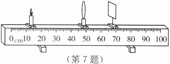 7 在“探究凸透镜成像规律”的实验中,小红调节蜡烛、凸透镜和光屏的位置,在光屏上成清晰的像,如图所示,下列说法正确的是( ).