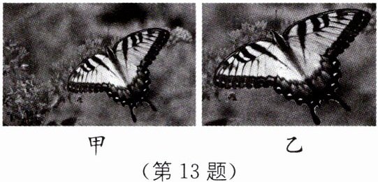 13 新情境 中华虎凤蝶 蝴蝶研究专家在茅山首次发现国家二级保护动物——中华虎凤蝶,他先用相机拍摄了蝴蝶休憩的照片甲,为了拍摄照片乙,应( ).