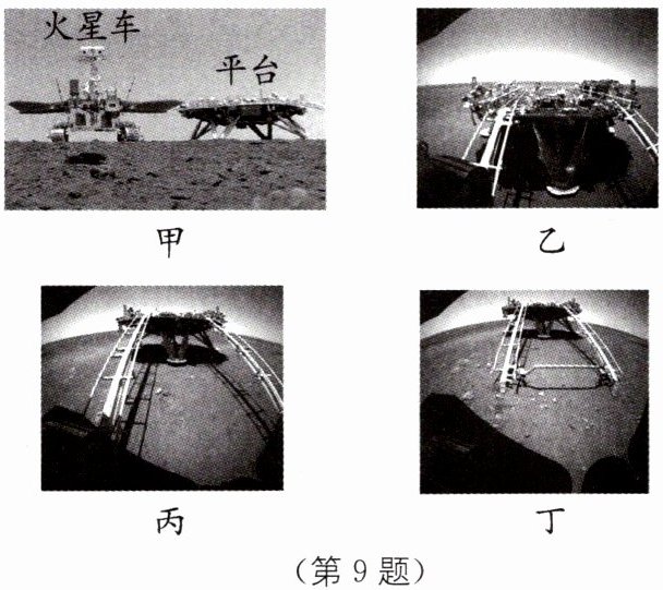 9 2021 年 5 月 15 日,中国探测器成功着陆火星,屈原在《天问》诗句中所表达的美好愿望成为现实,如图甲所示,“祝融号”火星车驶离平台的过程中,其后置照相机对着平台先后拍摄得到乙、丙、丁 3 张照片,照相机的镜头是一个______透镜,拍摄过程中相机镜头逐步______(填“向外伸”或“向内缩”).