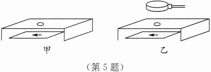 5 教材 P81 练习 T4·拓展 为了模拟探究显微镜的工作原理,小明在白纸上画上红色箭头,放在高约为 15 mm 的透明塑料盒下方,在盒的上方滴上一滴水,如图甲所示,通过水滴(相当于凸透镜)可看到位于水滴下方红色箭头放大的像;将一个焦距为 30 cm 的凸透镜放在水滴正上方,如图乙所示,保持凸透镜水平,调整凸透镜与水滴之间的距离,会看到箭头更大的像。关于该实验,下列说法中正确的是( )。