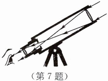 7 如图所示,望远镜通常由两个透镜组成,靠近眼睛的透镜叫作 ,靠近被观察物体的透镜叫作 。利用物镜使远处的物体成 的实像,这个实像再经过目镜放大,就能看清楚较远处的物体了。