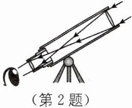 2 教材 P78 图 3-31·拓展(2023·陕西咸阳秦都区期中)“超级月亮”比正常时的月亮要大百分之二十,亮度也有所增加,某天文爱好者为了研究这一现象,于是架设一台开普勒望远镜做进一步观察。关于该望远镜,下列说法正确的是( )。