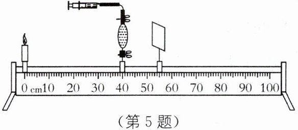 5 在模拟“视力缺陷矫正”的活动中,调整烛焰(模拟远处视物)、水凸透镜(模拟人眼晶状体,并与注射器相连,其凸起程度可通过注射器注入或吸收水来调节)、光屏(模拟人眼视网膜)在光具座上的位置,如图所示.