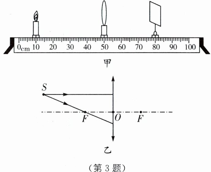 (3)S 是烛焰上一点,请在图乙中画出它发出的两条光线经凸透镜折射后的光路.