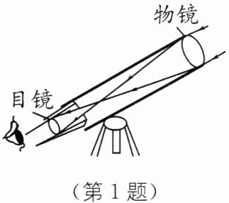 1 如图所示是由两组凸透镜组成的望远镜,使远处的物体在焦点附近成实像的物镜相当于______(填“照相机”或“投影机”)的镜头;物镜的直径比我们眼睛的瞳孔大很多,主要目的是______;历史上第一位自制天文望远镜观察天体的是意大利物理学家______。