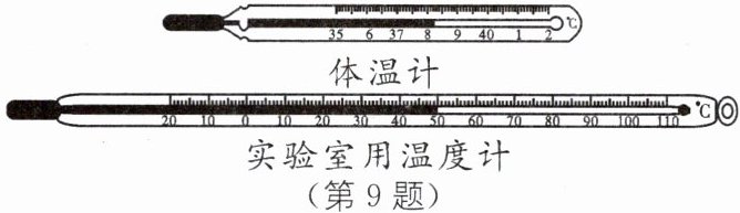 9 如图所示是生活中常见的体温计和实验室用温度计,下列说法正确的是( ).