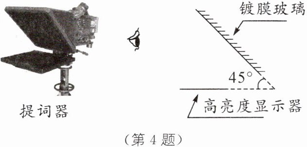 4. 新情境 提词器中的光学知识 提词器是由一个高亮度显示器和一块与其成45°角的专用镀膜玻璃组成,镀膜玻璃将显示器上的文稿内容反射到演讲者前方。当演讲者前方的镀膜玻璃上呈现“爱我中华”四个字时,他直接看显示器会看到( )。