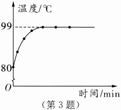 3 在探究水的沸腾实验中,小明绘制出温度随时间的变化图像如图所示,则此时水的沸点为______.沸腾前,水温变化的特点是______.写出形成这种特点的可能原因:______(写出一点即可).