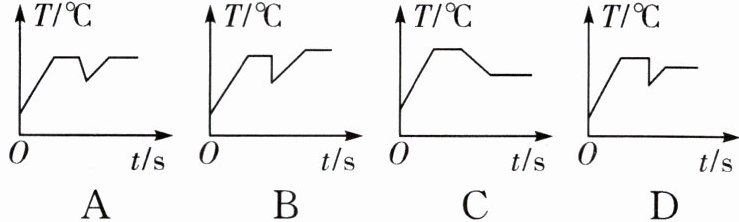 2 小华在家烧水煮饺子,中途发现水量少了些,于是又迅速往锅里加了一碗水,并将水再次烧开.下面能反映小华整个烧水过程中锅内水的温度随时间变化的图像是( ).