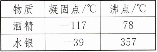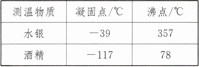 (5)参考表中数据,本次实验所用温度计玻璃泡内的测温物质应为______.