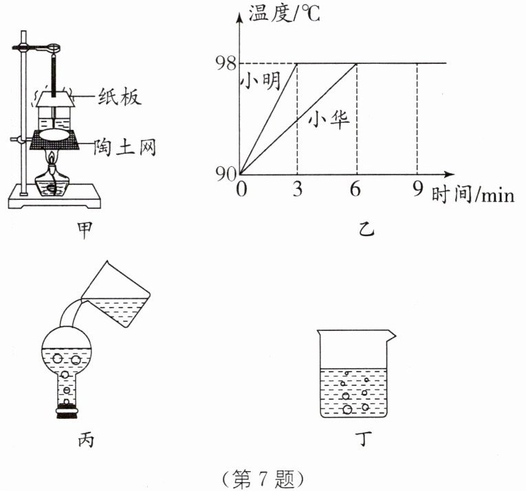 7 如图所示,小明和小华用如图甲的实验装置,完成了“探究水沸腾时温度变化特点”的实验,根据实验数据,各自绘制出了如图乙所示的图像.