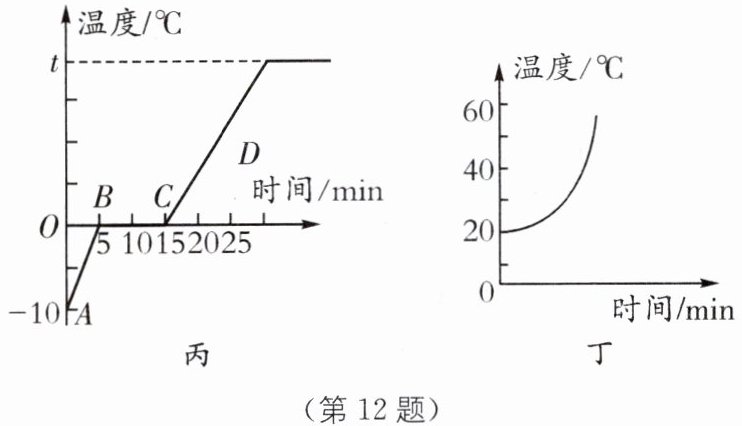 12 某物理小组利用如图甲、乙所示装置进行“探究冰和石蜡熔化特点”的实验.冰和石蜡熔化过程中温度随时间变化图像如图丙、丁所示.(烧杯中水的初温和环境温度均为20℃)