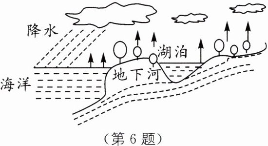 5 地球上的淡水资源约占地球总水量的3%,淡水的循环非常重要.下列关于地球上的水循环说法正确的是( ).