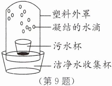 9 如图所示,简易的太阳能净水器可以将污水净化并收集起来.在净水的过程中,以下说法正确的是( ).