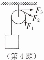 4 星期一学校举行升旗仪式,在旗杆顶端装有一个定滑轮,它的作用是可以改变力的______.如图所示分别用拉力$F_{1}$、$F_{2}$、$F_{3}$匀速提升重物,这三个力的大小关系是______.