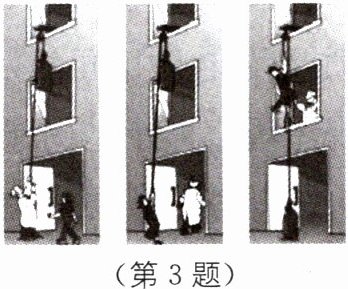 3 大人利用滑轮将重物吊到二楼,孩子想帮忙,却把自己吊了上去,如图所示.针对此过程,下列说法中错误的是( ).
