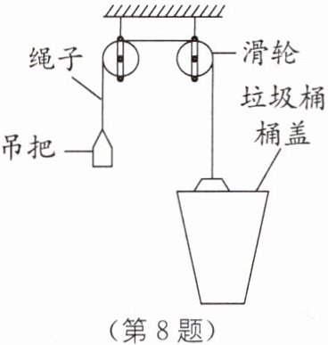 8 如图所示是某小区使用的一种垃圾投放装置的示意图,人向下拉吊把就能打开垃圾桶的桶盖,方便、卫生.下列说法正确的是( ).